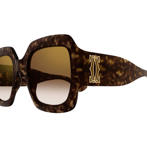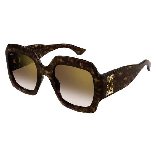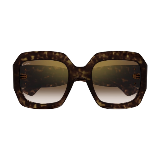 Die Double C Kollektion aus Acetat wird um eine klassische, eckige Oversize-Form erweitert. Das Gestell aus hochverdichtetem Acetat sorgt für ein markantes Design und garantiert gleichzeitig die Leichtigkeit des Rahmens. Das ikonische Double C Detail ist mit Emaille im gleichen Farbton wie die Gläser versehen. Die neuen Emaille- und Acetatfarben sind von der Lederwarenkollektion von Cartier inspiriert.