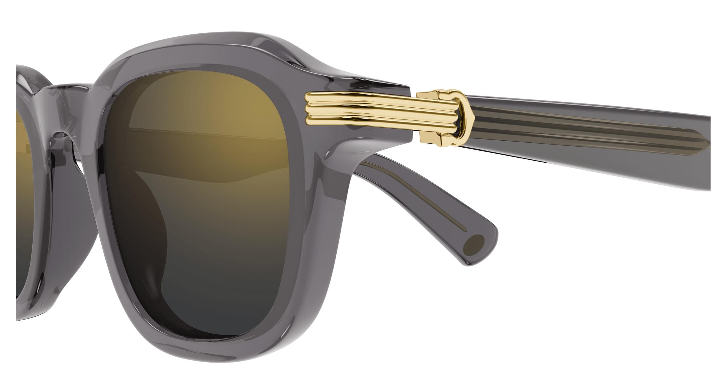 Die Première Acetatkonstruktion wird hier auf eine höhere Ebene gebracht: mit charakteristischem durchsichtigem Metalldrahtkern und verziert mit dem legendären Godron-Detail entlang der Bügel. Die moderne eckige Form wird durch die ikonische Kombination des Godron und des C de Cartier als ästhetisches und funktionales Element des Scharniers veredelt. Transparente Acetat-Farben auf einigen Modellen heben das mit dem ikonischen Godron verzierte Drahtkerndetail noch mehr hervor. Ein edles Gold- oder Platin-Finish und eine Plakette mit dem Double C de Cartier-Logo auf den Bügelenden, inspiriert durch Vintage-Modelle, runden das Modell ab.