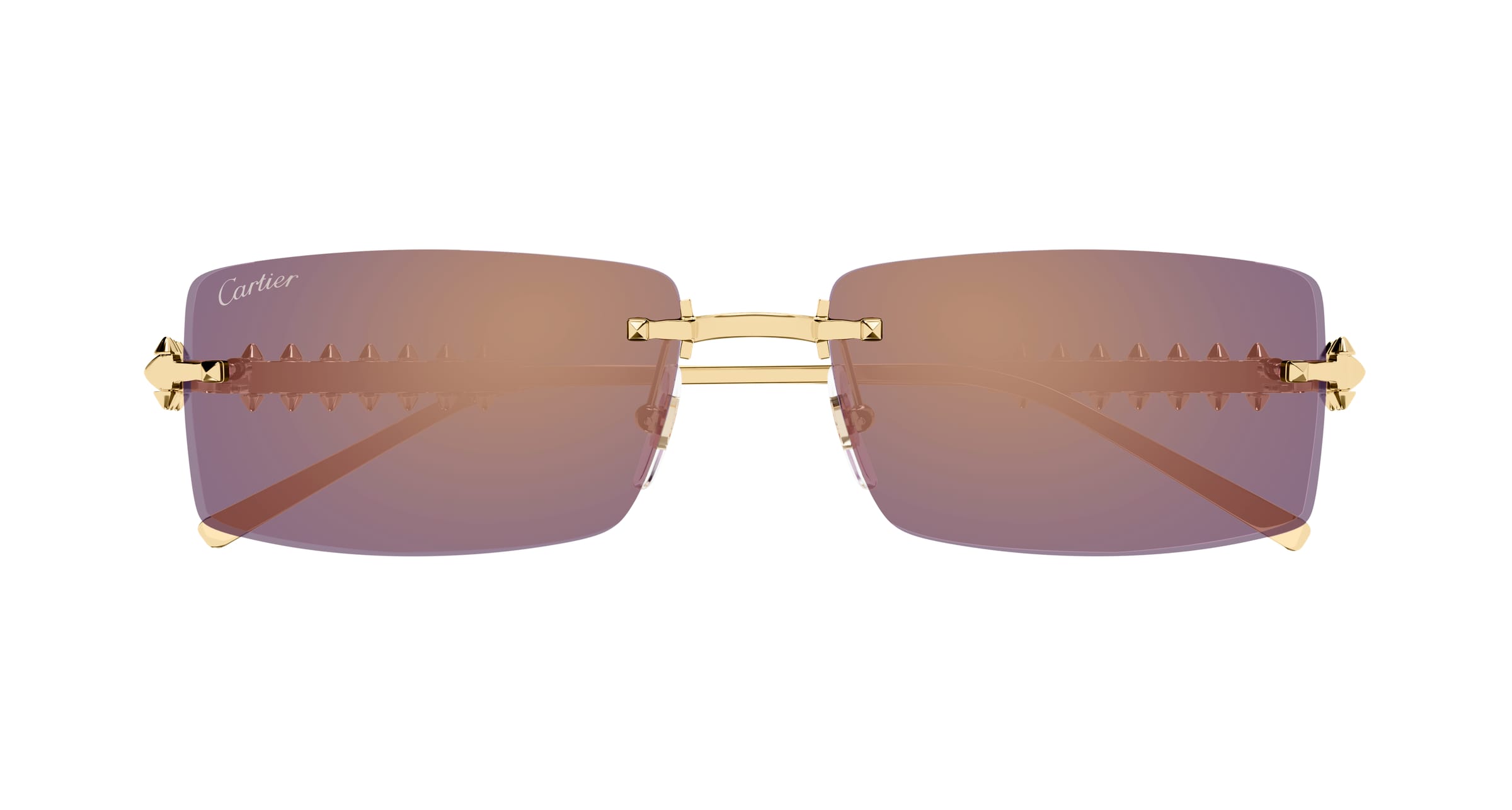 Die ikonische Clash de Cartier-Kollektion wird zum ersten Mal in der Eyewear-Kollektion auf den neuen, markanten Metallbügeln originalgetreu interpretiert. Rechteckige und moderne Unisex-Form mit randloser Konstruktion für einen stylischen Look. Jedes Picot kann leicht bewegt werden und reproduziert die charakteristische Bewegung des Schmuckstücks. Ein kostbares Finish in Gold oder Platin wird durch das Cartier-Logo auf den Bügelenden und neuen Gläserfarben vollendet, die von der Schmuckkollektion der Maison inspiriert sind.