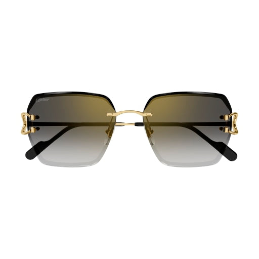 Décor C Classique Sonnenbrille aus Metall in glattem Gold-Finish, eckige Form, grau verlaufende Gläser. Maße: Gläser 58 mm, Steg 16 mm, Bügel 145 mm.