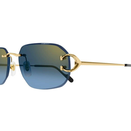 Décor C Classique Sonnenbrille aus Metall in glattem Gold-Finish, rechteckige Form, blau verlaufende Gläser. Maße: Gläser 58 mm, Steg 19 mm, Bügel 145 mm.
