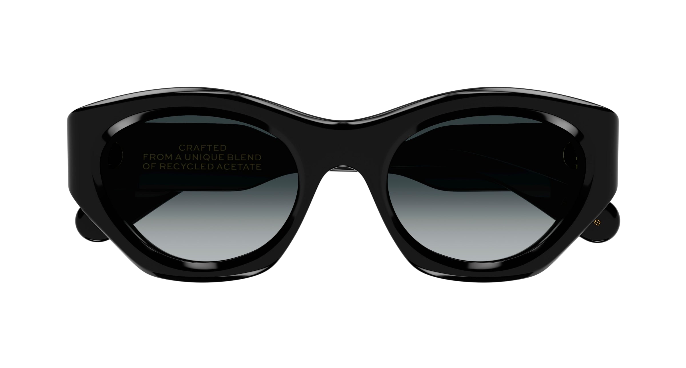 Rahmen in Cat-Eye-Form, der aus 100 % recyceltem Acetat gefertigt ist. Die recycelten, einzigartigen Farben werden durch ein voluminöses Gestell aus reinem Acetat betont, die mit einfarbigen und Verlaufsgläsern aus Bio-Nylon ergänzt wird. Gayia's Nachhaltigkeitsversprechen und der Name der Farbe sind in goldener Emaille auf die Innenseite des Bügels gedruckt. Bei der limitierten Auflage ist jedes Exemplar am Bügelende individuell nummeriert.