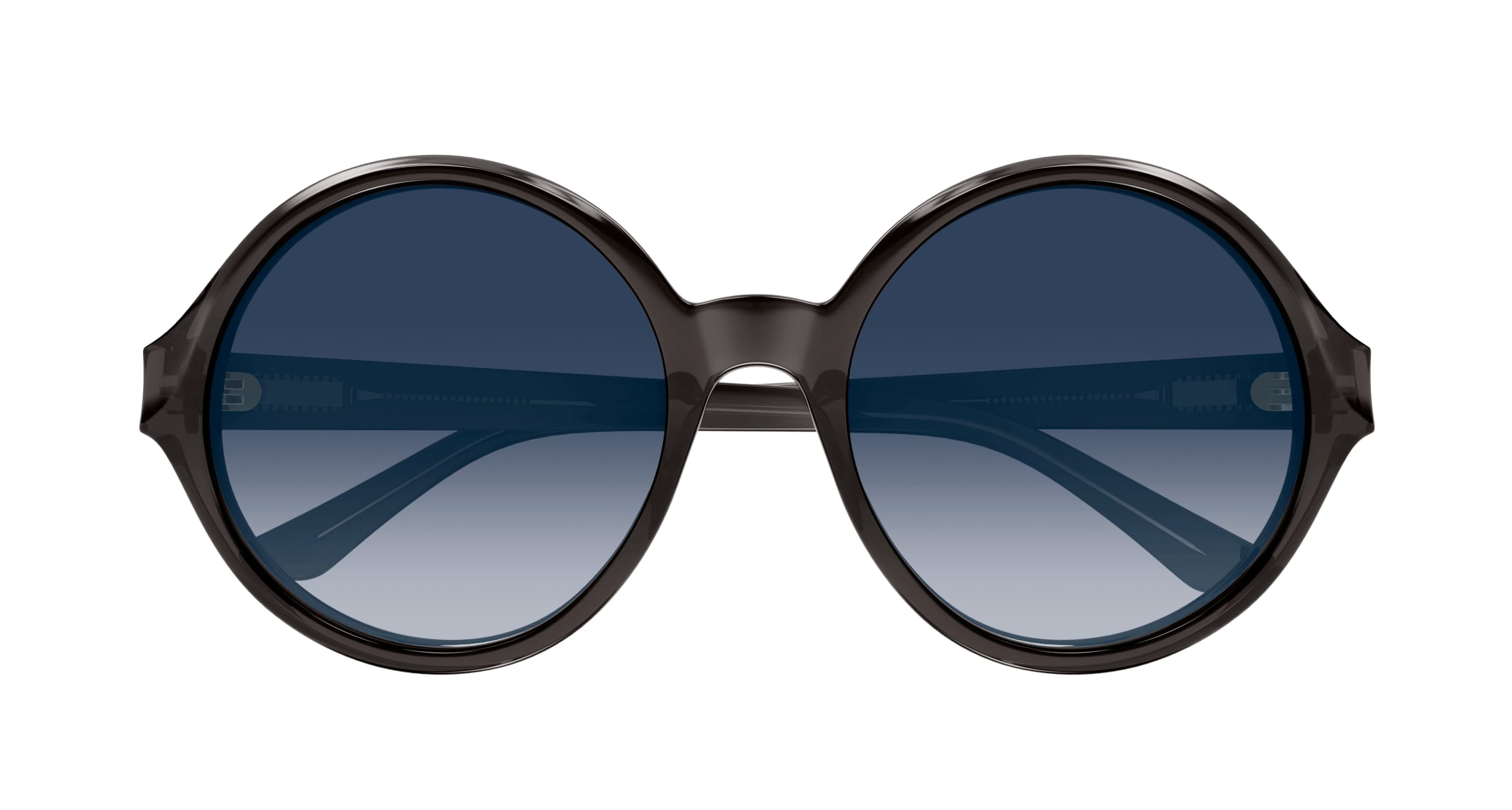 Runde Oversize-Form aus Acetat mit einzigartigem Vintage-Look , bereichert duch Abschrägungen auf der Front. Spezielle Havanna-Töne und tiefe, durchscheinende Farben verstärken die Proportionen.