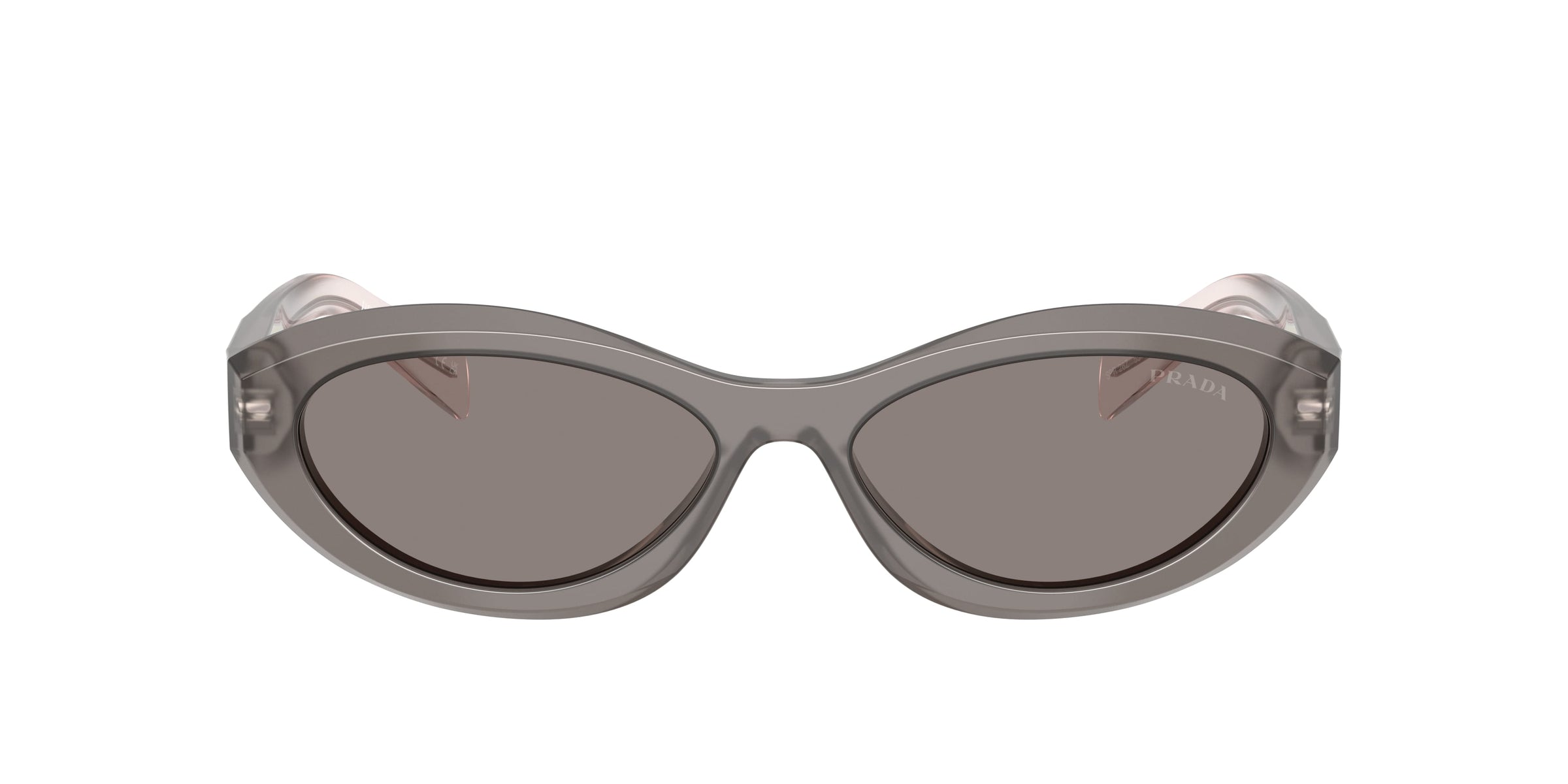 Die Sonnenbrille Prada 26ZS 20F80Q ist in geometrischer Form gefertigt und steht für ein modernes, markantes Design. Die Fassung in Grau mit glänzender Oberfläche besteht aus Acetat. Die Bügel sind in Grey & Pink Gradient ausgeführt, Bügellänge 145 mm. Rahmentyp — Vollrand.