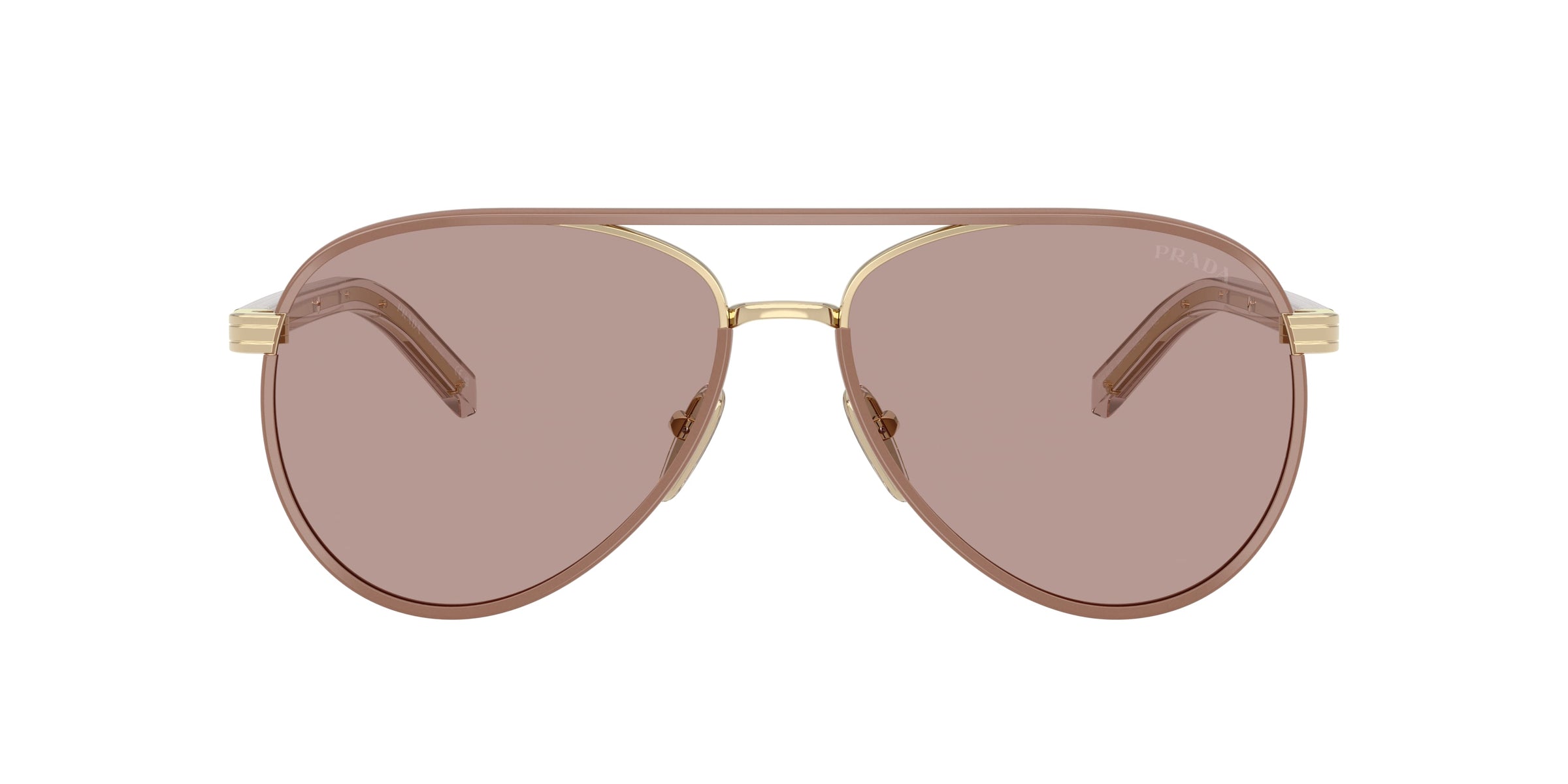 Die Sonnenbrille Prada B57S 24E20I überzeugt in klassischer Pilot-Form. Die glänzende Fassung in Hellgold besteht aus Stahl, kombiniert mit Bügeln in Mauve freddo (145 mm). Rahmentyp — Vollrand. Mit verstellbaren Nasenpads für optimalen Tragekomfort. Passform — schmal.