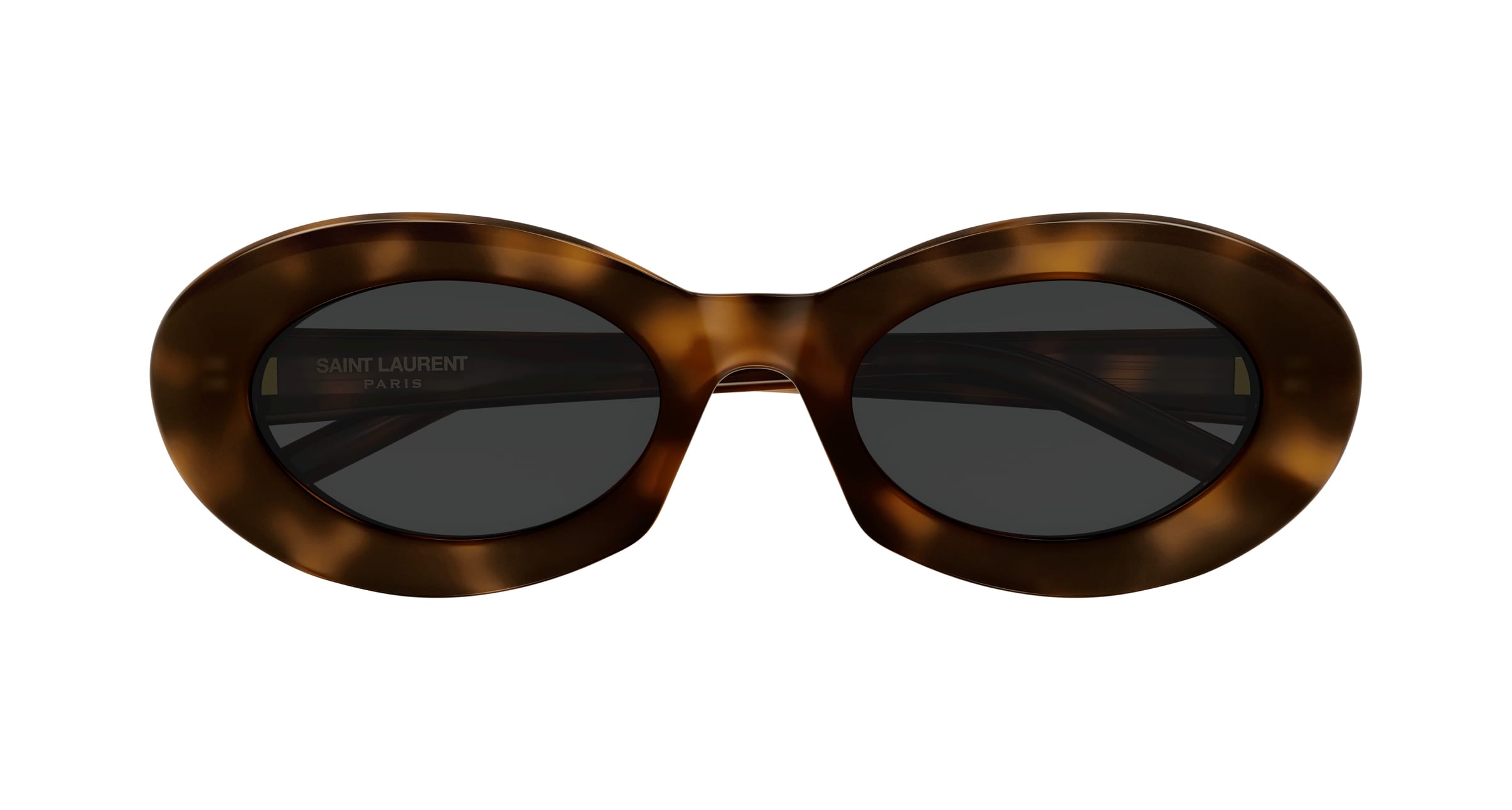Kräftige, markante Acetat-Konstruktion, inspiriert von Anthony Vaccarellos kreativen Ideen. Feminine ovale Form mit Saint-Laurent-Logo auf den Bügeln.