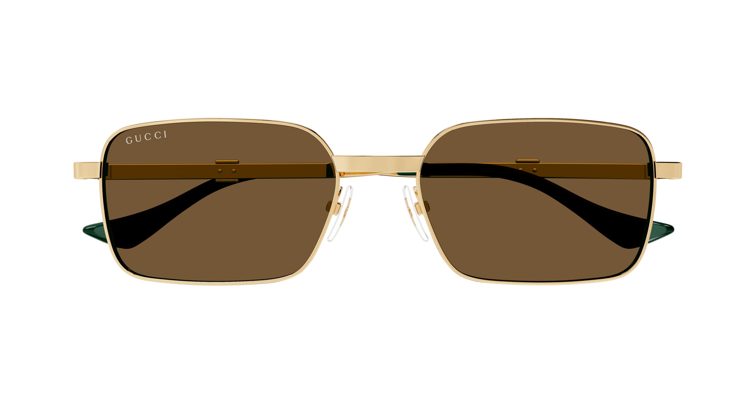 Für das neue Running Web Konzept diente das Vintage-Archiv als Inspiration. Die Produktfamilie zeichnet sich durch einen emaillierten Metalleinsatz an der Mitte des Bügels aus. Die rechteckige Form ist aus Metall gefertigt. Das Gucci Schriftzug-Logo ist als Lasergravur auf den Bügeln angebracht. Die glänzende Farbpalette des Gestells wird mit einfarbigen Gläsern kombiniert.