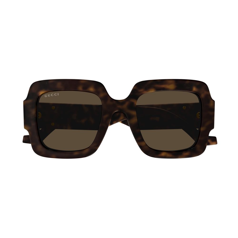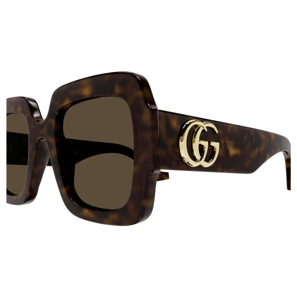 Gucci GG1547S-002 50 Sonnenbrille Damen aus Acetat in Havanna braun. Diese markanten Oversize-Modelle aus Acetat zeichnen sich durch Bügel mit 45°-Scharnier sowie einzigartige Farben aus, die den Diva-Look betonen. Das Acetatmodell überzeugt durch eine markante Oversize-Form. Das goldfarbene GG Interlocking-Logo auf beiden Bügeln verleiht dem Modell einen unverwechselbaren Touch. Die klassische und dennoch trendige Farbpalette umfasst gestreifte Modelle mit Glitzereffekt.