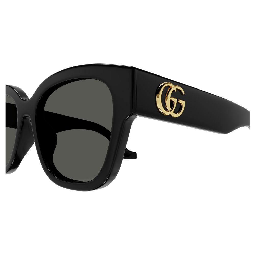 Gucci GG1550SK-001 54 Sonnenbrille Damen Acetat schwarz. Diese markanten Oversize-Modelle aus Acetat zeichnen sich durch Bügel mit 45°-Scharnier sowie einzigartige Farben aus, die den Diva-Look betonen. Das Acetatmodell überzeugt durch eine dezente Cat-Eye-Form. Das goldfarbene GG Interlocking-Logo auf beiden Bügeln verleiht dem Modell einen unverwechselbaren Touch. Die klassische und dennoch trendige Farbpalette umfasst gestreifte Modelle mit Glitzereffekt.