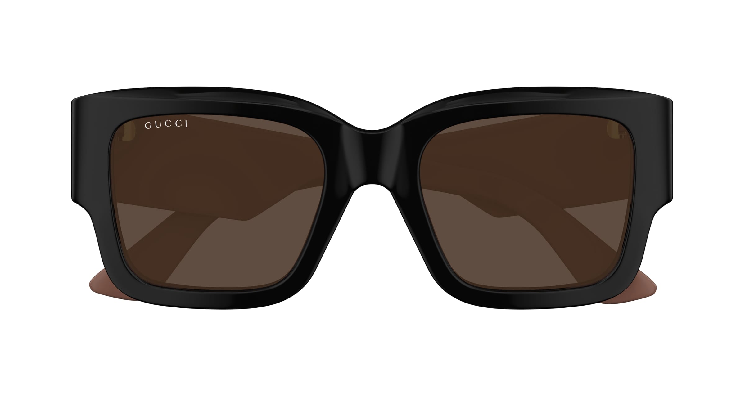 Acetatmodelle mit zweischichtigen, farbigen Bügeln, die an das kultige Detail der Web-Brille erinnern. Eckige Form. Interlocking GG-Logo auf den Bügeln. Kommerzielle und doch coole Farbpalette mit mindestens zwei Farbkombinationen.