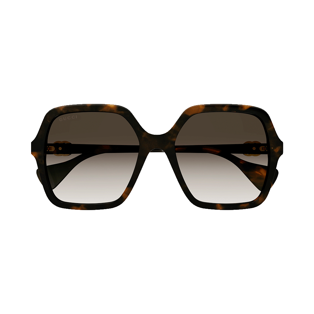 Sehr feminine Damen Sonnenbrille in quadratischer Form aus Vollacetat. Auf beiden Bügeln ein Mini-GUCCI-Logo. Flache Bügelenden in bequemer Passform. Feminine Damen Sonnenbrille Gucci GG 1072-S in quadratischer Form aus Vollacetat. Beide Bügel mit Mini-GUCCI-Logo versehen. Bequeme Passform.