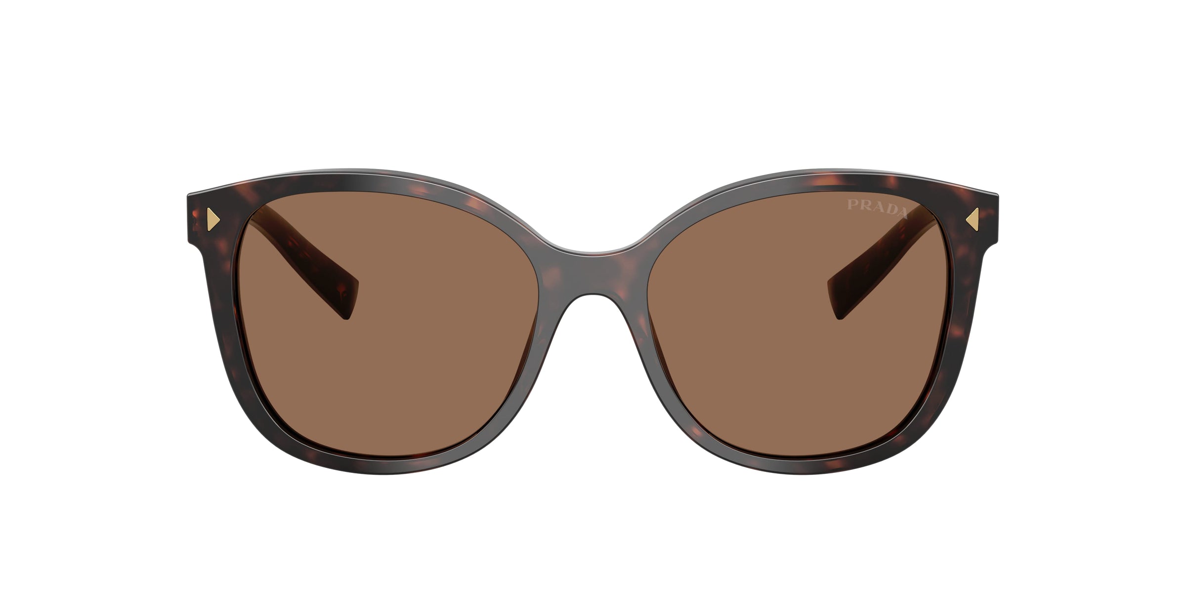 Sonnenbrille Prada 22ZS 17N06B ist in eckiger Form gefertigt und verbindet eine markante Silhouette mit der Farbe Tartaruga radica. Die Fassung ist in Acetat mit glänzender Oberfläche ausgeführt.