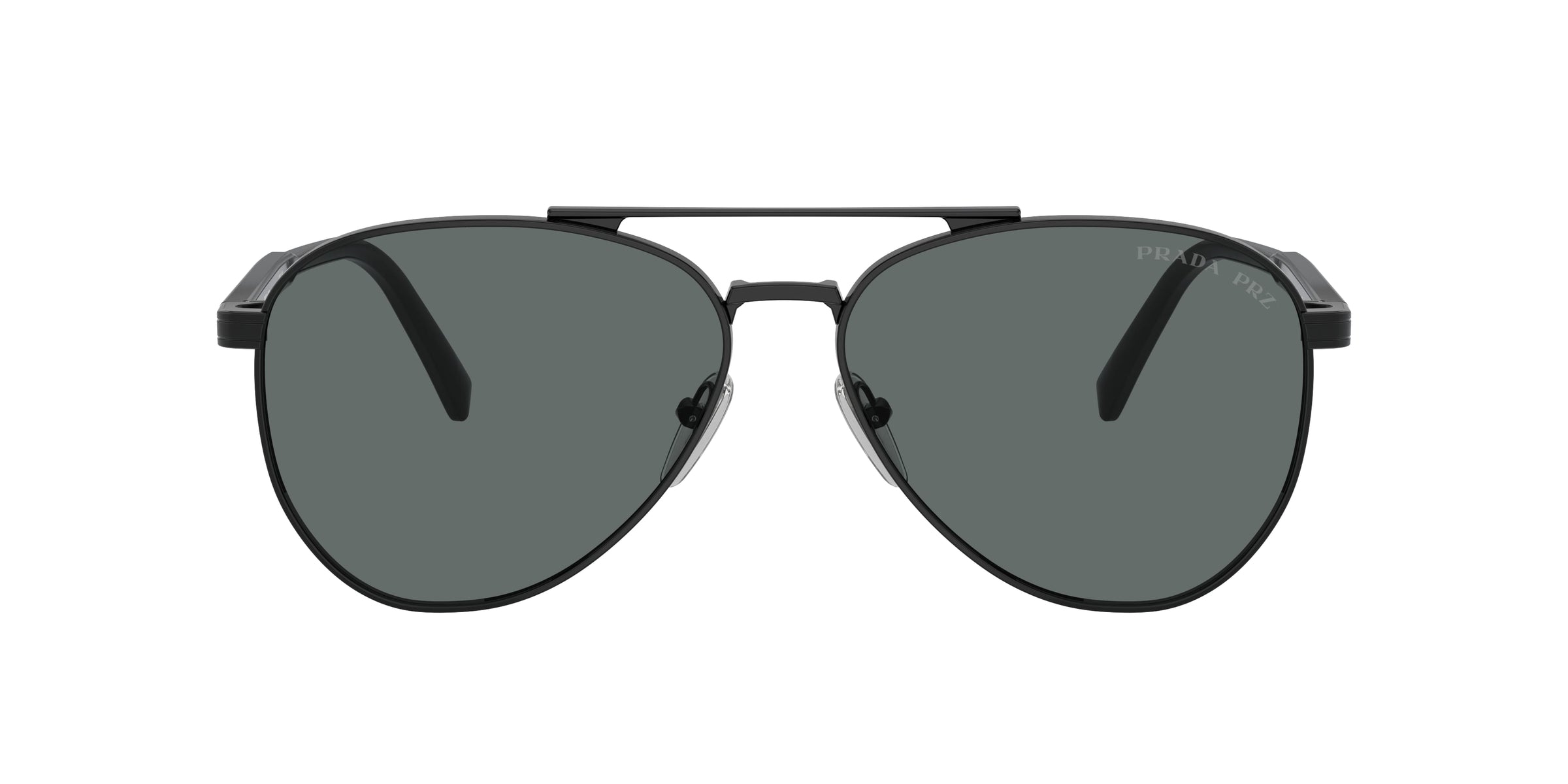 Die Sonnenbrille Prada A58S 1AB5Z1 präsentiert sich in klassischer Pilot-Form mit markanter Doppelsteg-Optik. Die glänzende Fassung in Schwarz besteht aus Stahl, mit schwarzen Bügeln (145 mm). Rahmentyp — Vollrand. Ausgestattet mit verstellbaren Nasenpads für optimalen Sitz.